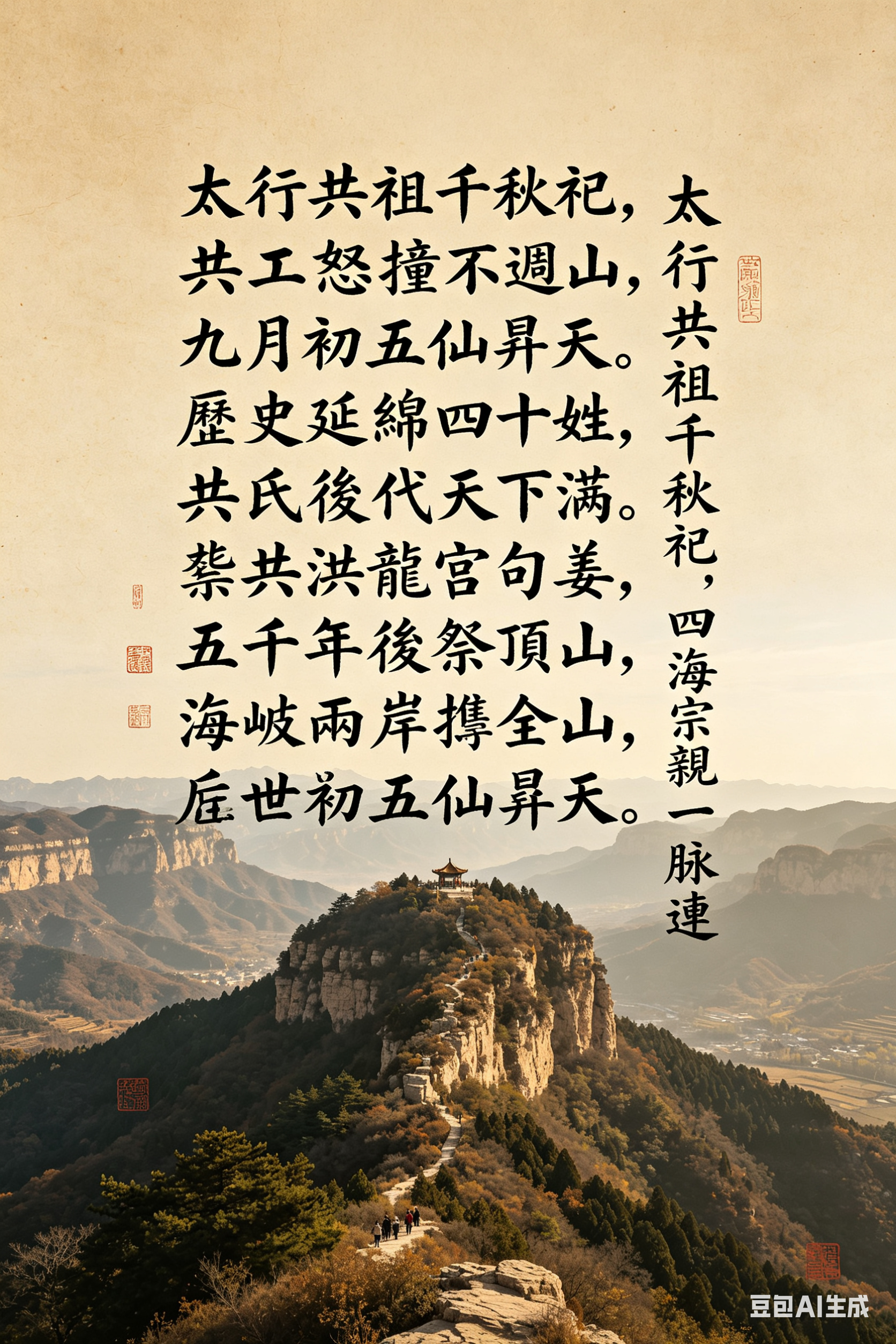 華夏宗親聯誼會 太行共祖千秋祀,四海宗親一脈連 21 4 月, 2026 新聞中心 陈庆棉 华夏宗亲联谊会 太行共祖千秋祀,四海宗親一脈連 共工怒撞不週山, 九月初五仙昇天。 歷史延綿四十姓, 共氏後代天下滿。 龔共洪龍宮句姜, 五千年後祭祖先。 太行山上轎頂山, 孟莊共工主題園。 海峽兩岸攜全球, 後世敬祖蒞輝縣。 共工文化传四海 太行共祖,華夏同根。 Post Views: 542,185 Continue Reading Previous 深耕兩岸融合路 堅守和平統一赤子心——李鎔任推動兩岸交流 More Stories 興中同盟會 華夏宗親聯誼會 中華全球華僑總會 深耕兩岸融合路 堅守和平統一赤子心——李鎔任推動兩岸交流 14 1 月, 2026 新聞中心 華夏宗親聯誼會 華夏宗親聯誼會 團隊與拜訪 24 1 月, 2024 新聞中心 華夏宗親聯誼會 中華全球華僑總會 興中同盟會 中國台灣「興中同盟會」政黨應邀專程拜訪世界華商總會 20 1 月, 2024 新聞中心